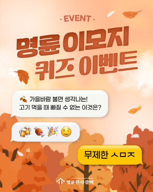 ㈜명륜당이 운영하는 숯불돼지갈비 프랜차이즈 명륜진사갈비가 고객 참여형 SNS 이벤트인 ‘명륜 이모지 퀴즈이벤트’를 11월 4일까지 진행한다고 밝혔다.